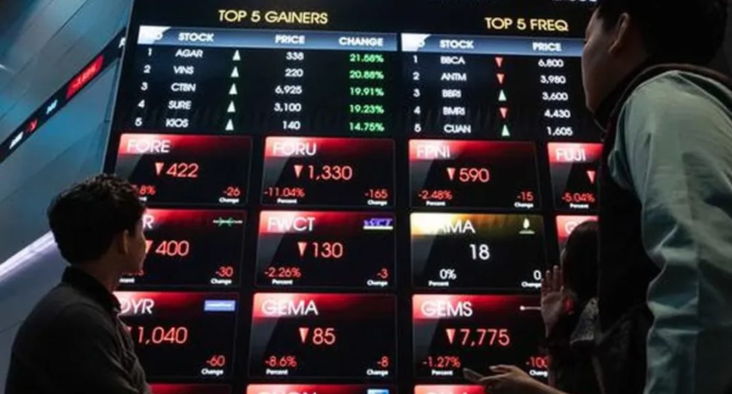 JAKARTA, ASATUNEWS.BIZ.ID — Pada Kamis sore, Indeks Harga Saham Gabungan (IHSG) di Bursa Efek Indonesia (BEI) menunjukkan tren penurunan, dipicu oleh kegelisahan pelaku pasar terkait kebijakan tarif yang dikeluarkan Amerika Serikat (AS).